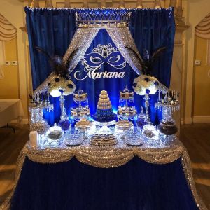 - One custom made thematic dessert table with a backdrop